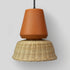 Lámpara colgante de cerámica en tono terracota suave y mimbre natural, con un diseño armónico y balanceado. Cada pieza se elabora artesanalmente mediante moldeado y cocción en horno de alta temperatura. Su pantalla de mimbre natural, tejida a mano en forma de cesto, evoca el trabajo artesanal tradicional.