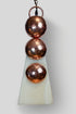 Halo de tres esferas en cobre martillado, es la manifestación más brillante del flujo energético. Las tres esferas, trabajadas artesanalmente en Santa Clara del Cobre, irradian una luminosidad cálida que se refleja en la base de ónix tallada en Tecali. La textura del metal martillado atrapa y dispersa la luz, creando destellos que evocan el fuego cósmico. Suspendida, la luminaria se convierte en un faro que celebra la alquimia entre materia y energía.