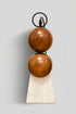 Cátodo de dos esferas en parota, condensa el equilibrio entre lo natural y lo espiritual. Dos esferas de madera, colocadas verticalmente sobre la base de ónix, canalizan una luz suave que respira con la calidez del material. Su diseño portátil y su asa superior permiten llevar la luz como un gesto cotidiano de armonía, uniendo la energía del fuego y la serenidad de la tierra.