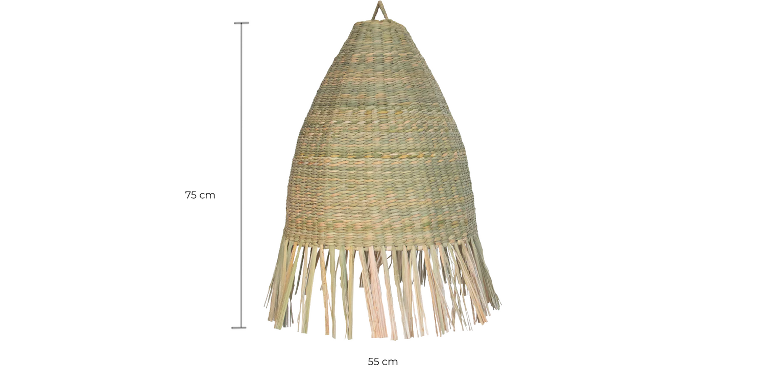 Lámpara colgante con tejido tipo cadena con fibra natural de chuspata. Solamente incluye pantalla.