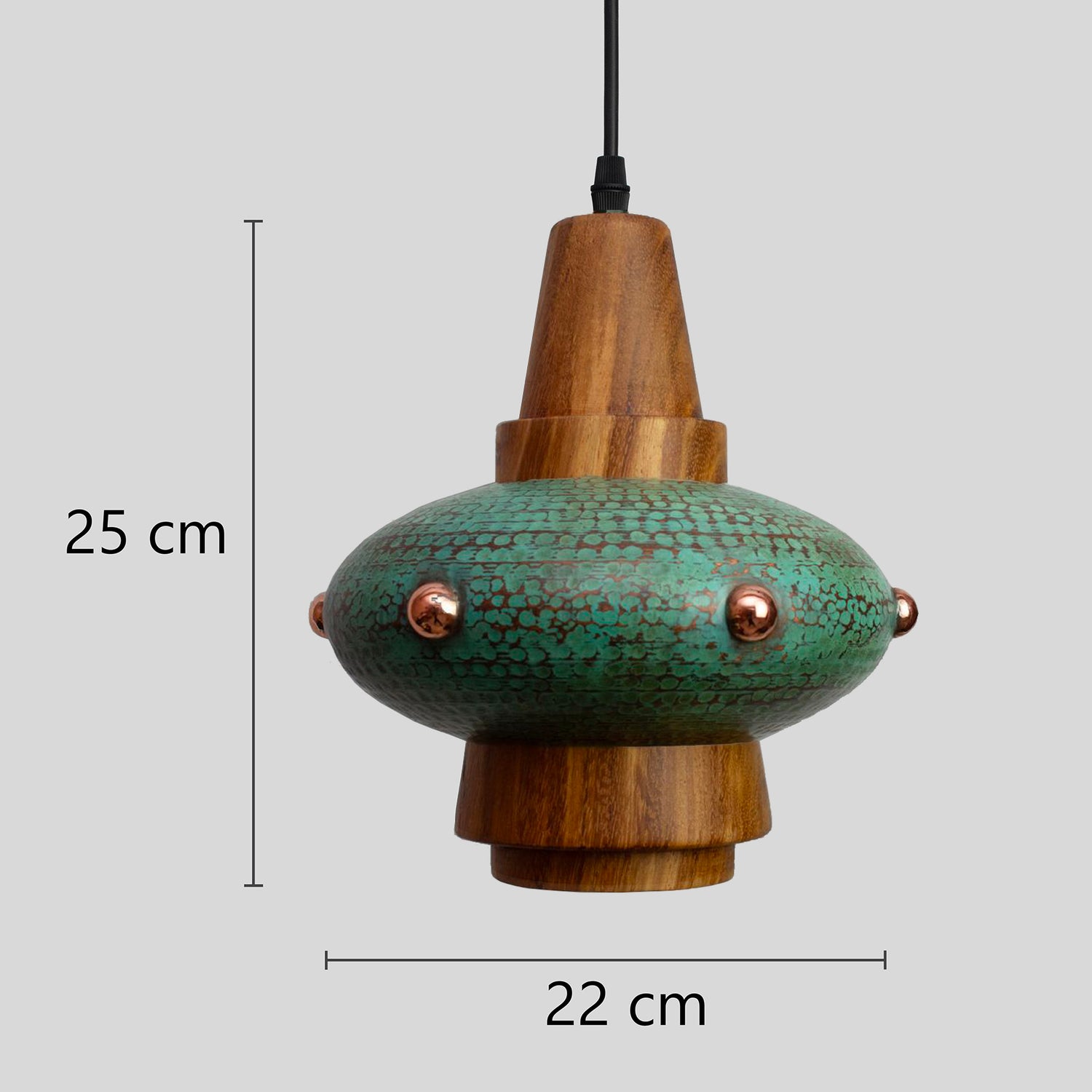 El cobre martillado de Santa Clara del Cobre y la madera de parota torneada a mano se unen en esta luminaria como una celebración del oficio y la materia natural. El cobre, noble y duradero, conserva las huellas del martillo que hacen de cada pieza un objeto único, ya sea en su acabado natural o en sus distintas pátinas.