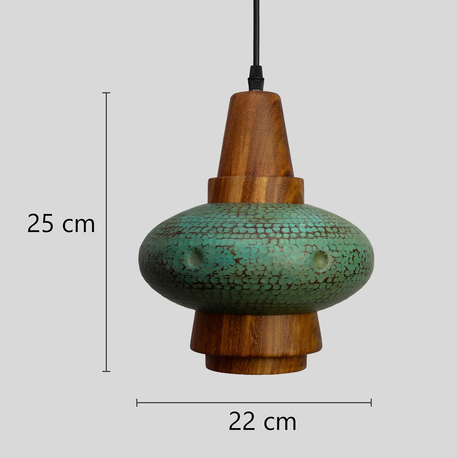 El cobre martillado de Santa Clara del Cobre y la madera de parota torneada a mano se unen en esta luminaria como una celebración del oficio y la materia natural. El cobre, noble y duradero, conserva las huellas del martillo que hacen de cada pieza un objeto único, ya sea en su acabado natural o en sus distintas pátinas.