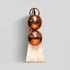 Cátodo de dos esferas en cobre martillado, es una luminaria que encarna el poder transformador de la energía. Dos esferas metálicas, martilladas con precisión artesanal, irradian destellos cálidos sobre la base de ónix que sostiene la pieza. El aro superior sirve como asa, símbolo del vínculo entre movimiento y permanencia. Una linterna contemporánea que honra la tradición del fuego como guía ancestral.