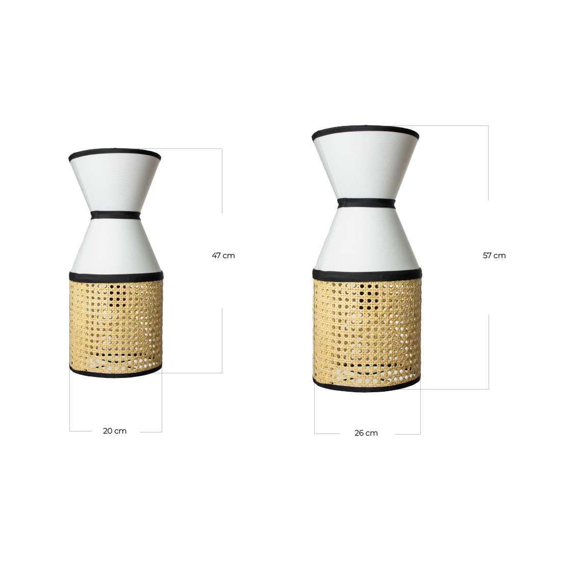 El bejuco, una fibra natural resistente y flexible, es trabajado a mano por artesanos que transforman cada pieza en un reflejo de su talento y tradición. Ideal para interiores y exteriores protegidos, esta lámpara crea ambientes cálidos